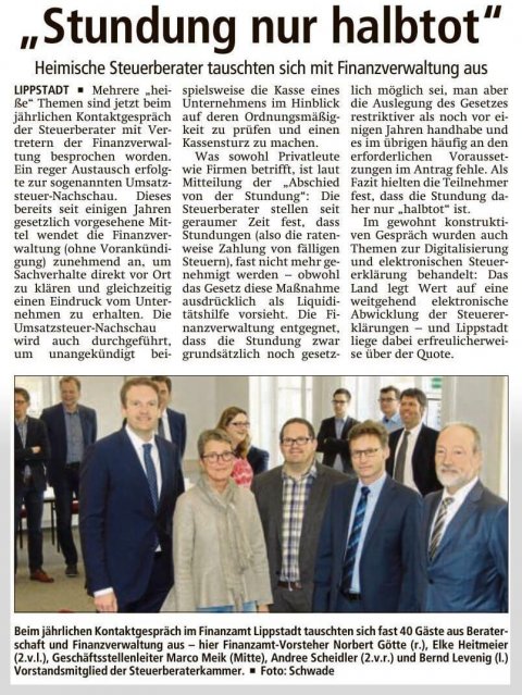Kontaktgespräch im Finanzamt deimel-newsBy tladmin10.03.2017Beim jährlichen Kontaktgespräch im Finanzamt Lippstadt tauschten sich die Lippstädter Steuerberater…